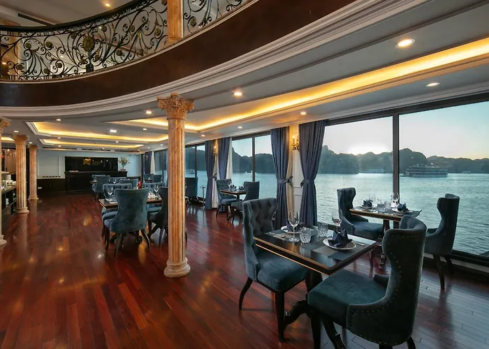 Le Theatre Cruises - Kỳ Quan trên Vịnh Lan Hạ Hotel Hạ Long sành điệu được xếp hạng 5 sao và có 26 phòng với các tiện nghi khác nhau. Động Thiên Cung và Cảng tàu khách Quốc tế Tuần Châu cách Le Theatre Cruises - Kỳ Quan trên Vịnh Lan Hạ Hotel 4.3 km và 1.9 km.